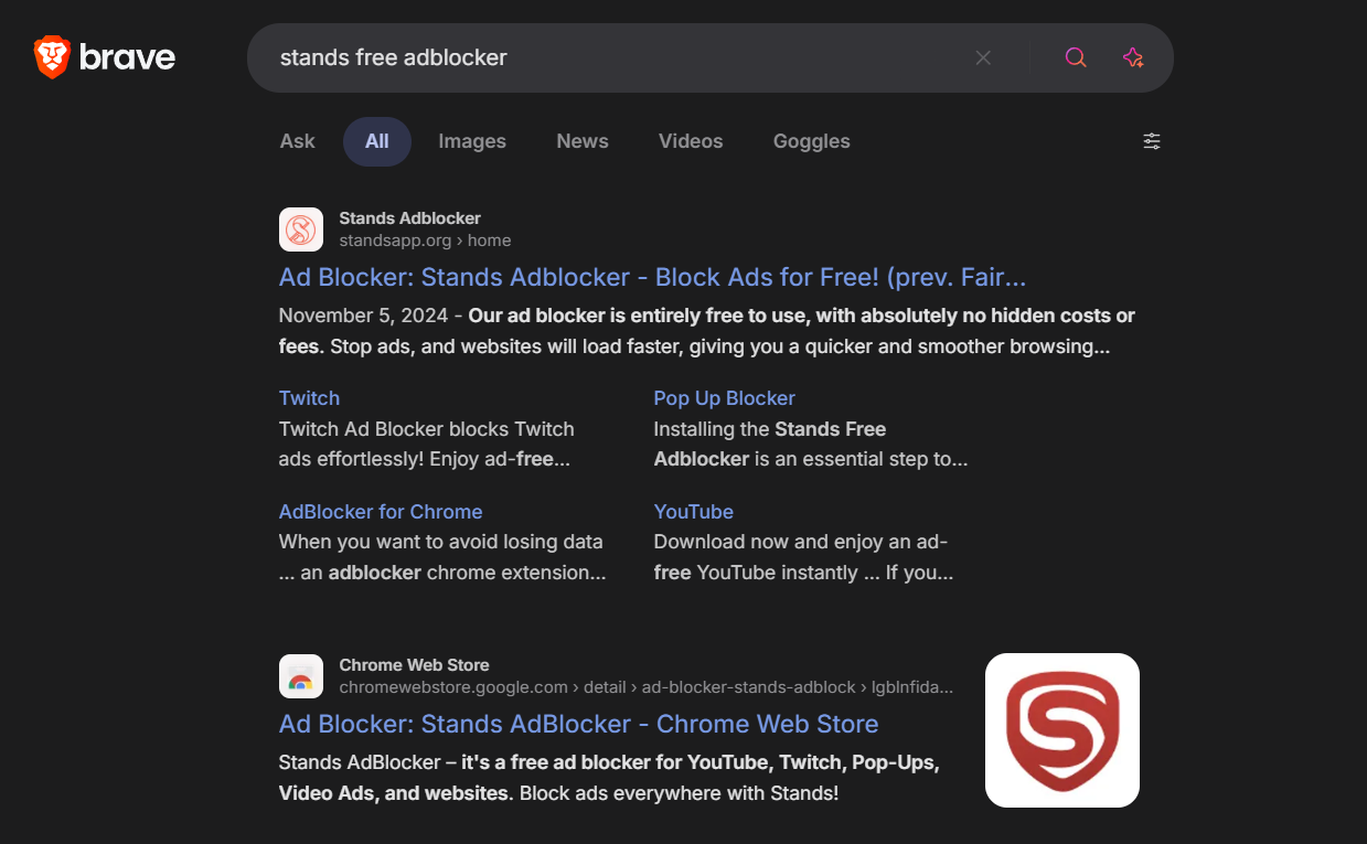 - Install a reliable ad blocker, such as Stands Adblocker!