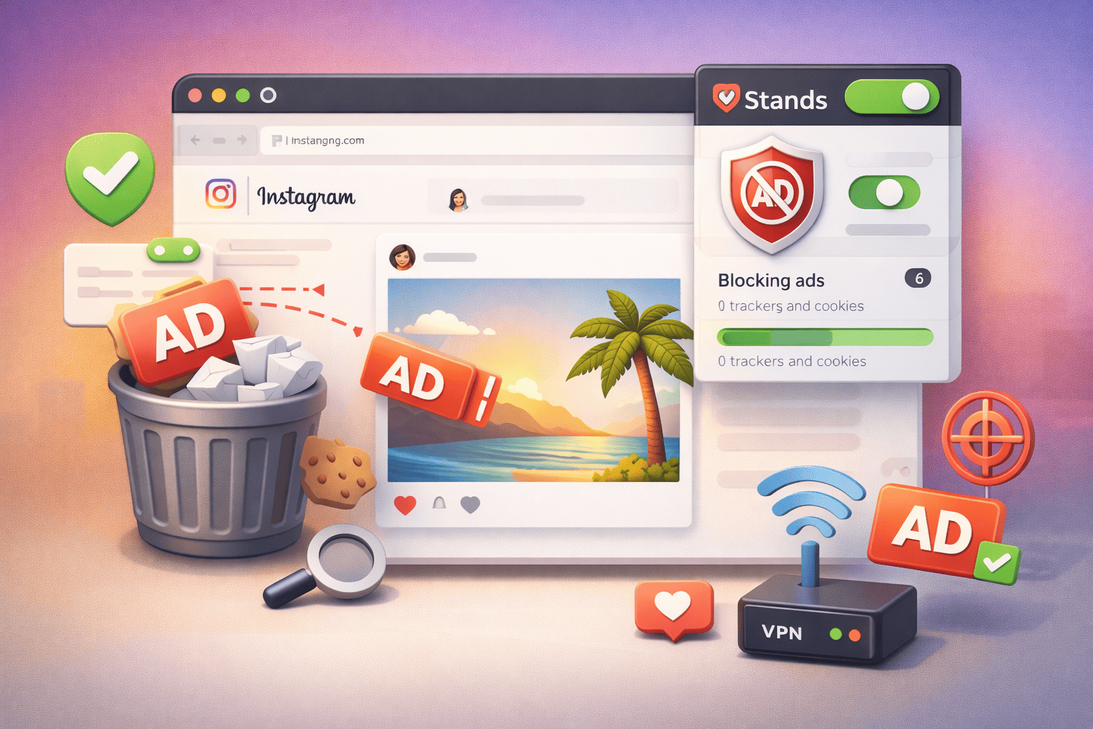 You can't remove Instagram ads, but you can reduce their impact, limit ad tracking, and improve your Instagram experience by using a powerful ad blocker such as Stands and the platform's built-in privacy and ad settings. Understanding all these limitations allows you to make informed decisions :)