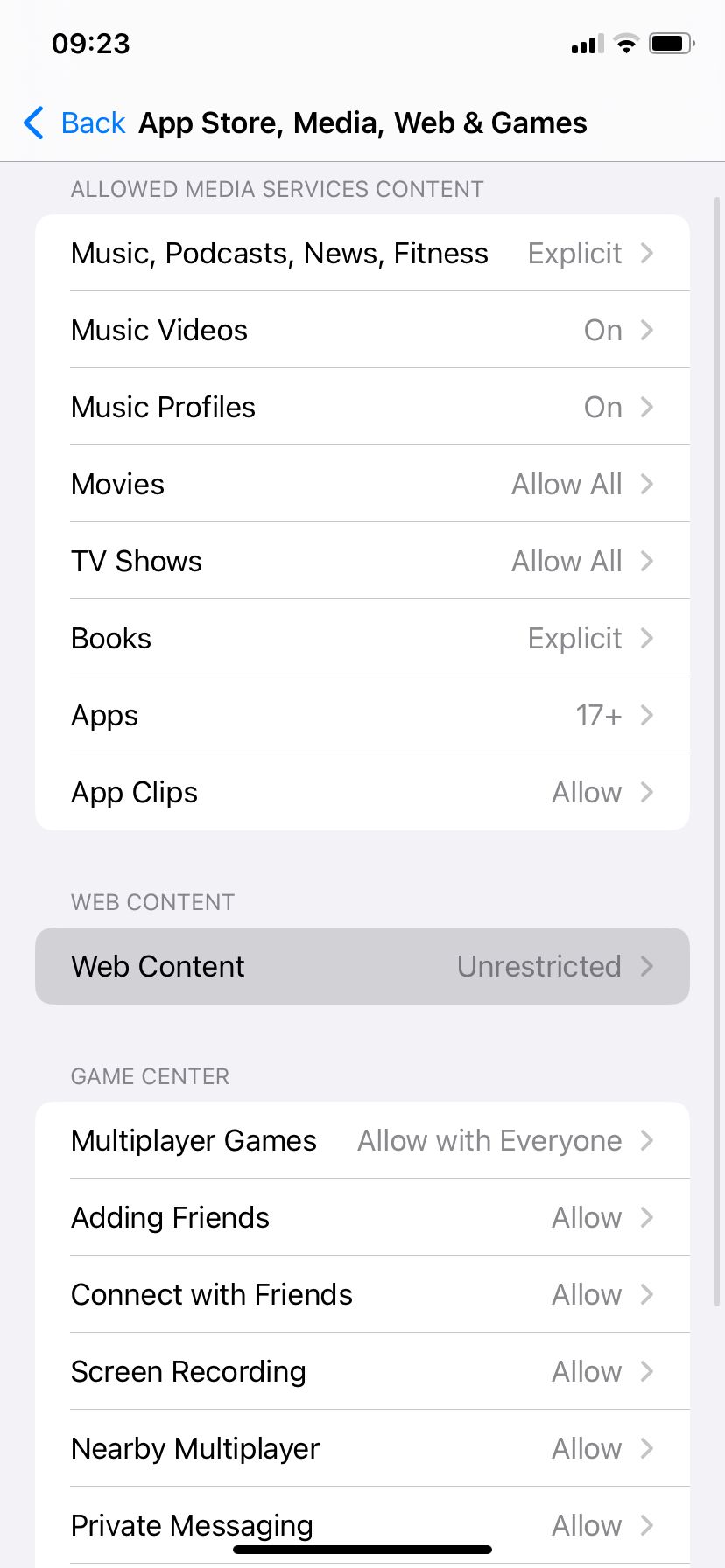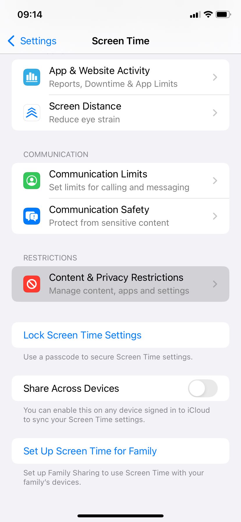 - Vá para Restrições de conteúdo e privacidade.