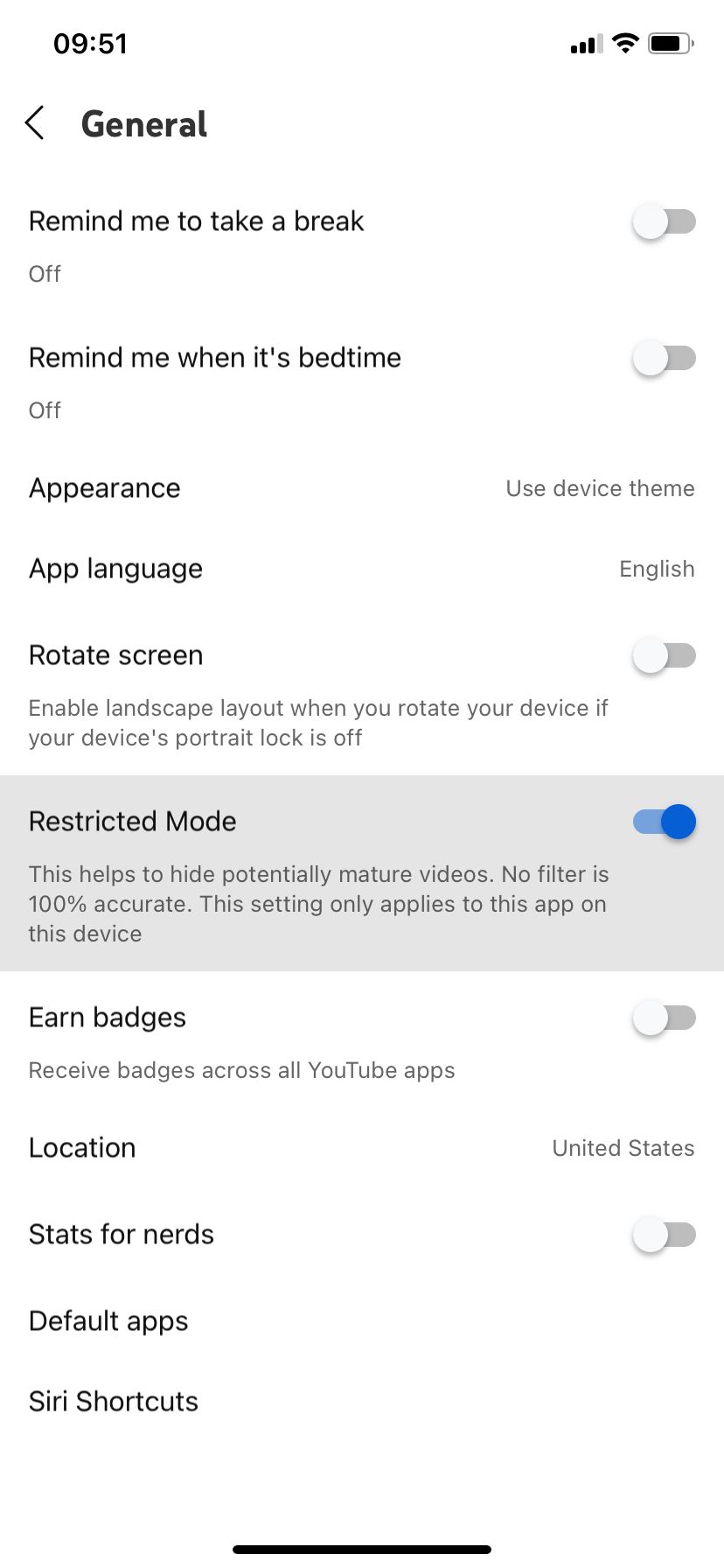 - Ative a opção Modo restrito.