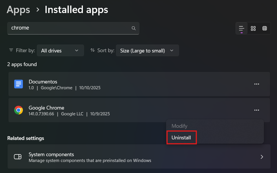 - Dependiendo de tu sistema operativo, desinstala Chrome siguiendo los pasos anteriores.
